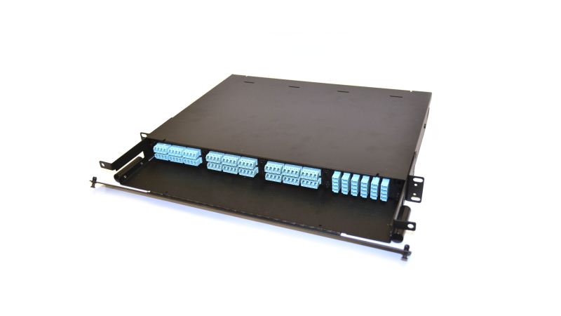 1RU機架安裝配線架的設計旨在在同一機柜中同時進行接線和拼接。支架有19或23個機架,可容納使用LC,MPO,SC,FC或ST適配器的6-72光纖適配器板或盒。安費諾(Amphenol)的1RU光纖機架安裝配電盤將尾纖完全包裹起來(通常在單獨的配電盤之間布線),從而提供了更好的保護和更短的電纜長度。
